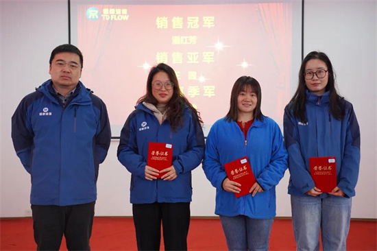 黨委書記楊凌杰為銷售冠軍潘紅芳、亞軍王園、季軍朱川渝頒獎