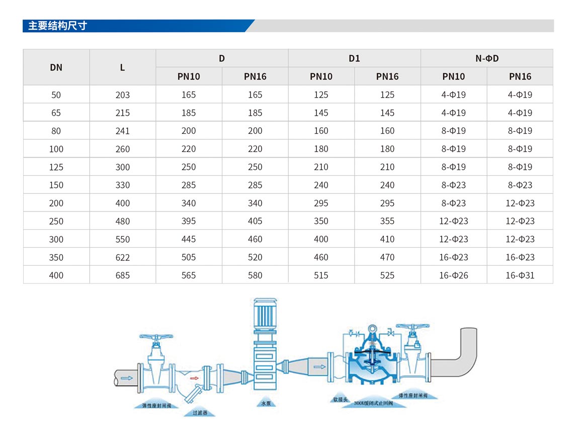 具有開啟和關(guān)閉速度調(diào)控的逆止閥,于啟動(dòng)或停止抽水機(jī)運(yùn)轉(zhuǎn)時(shí),可配合現(xiàn)場(chǎng)調(diào)節(jié)至開啟或關(guān)閉速度??捎糜诟邔咏ㄖ?,減少水錘及水聲現(xiàn)象產(chǎn)生,以達(dá)安靜關(guān)閉之效果。 公稱壓力∶PNI0、PNI6、PN25 隔膜式∶DN50~DN500
