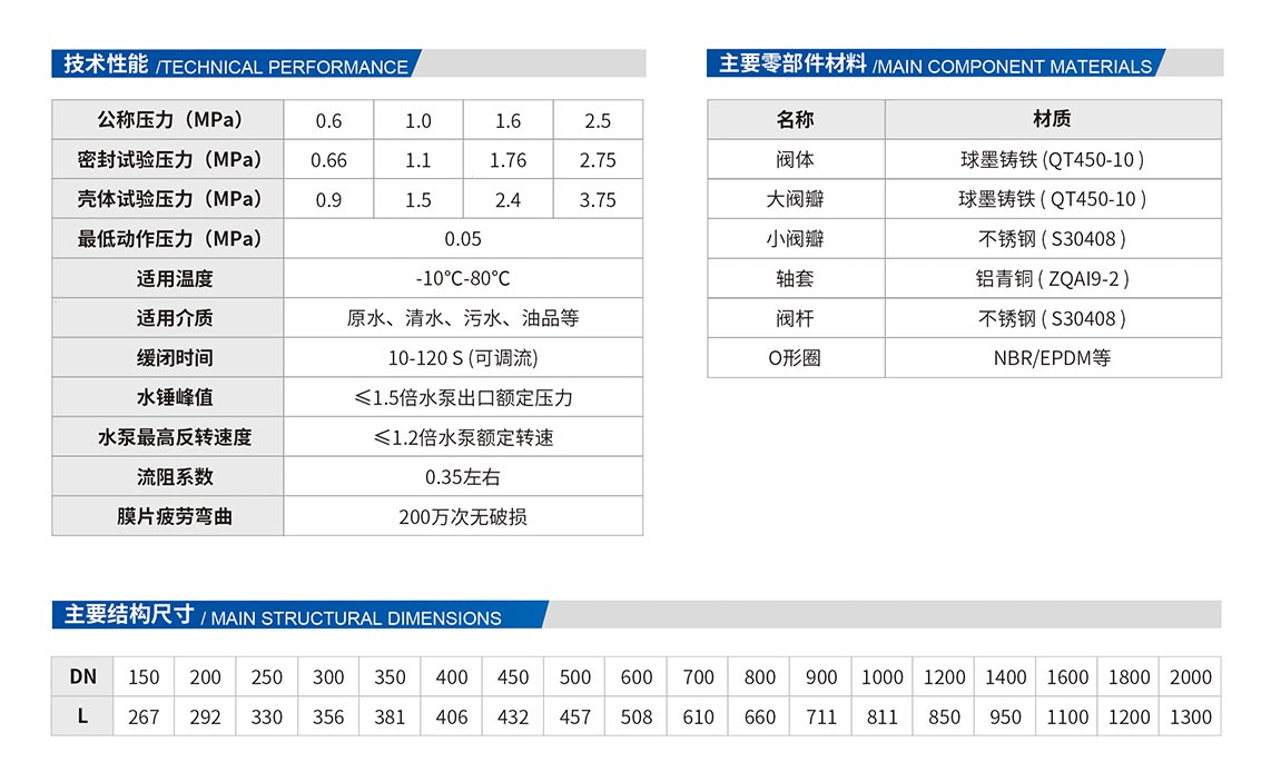 4、安裝在水泵出口管道上,具有關(guān)閥啟泵、關(guān)閥停泵(停泵無(wú)水錘)、非人為意外停泵時(shí)防止水錘破壞等功能,關(guān)閉時(shí)間可調(diào)。